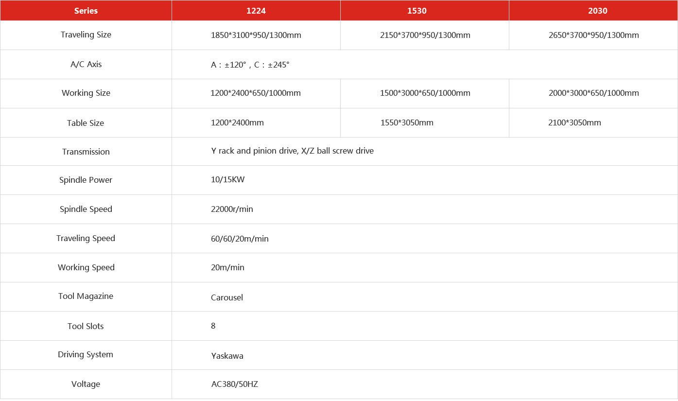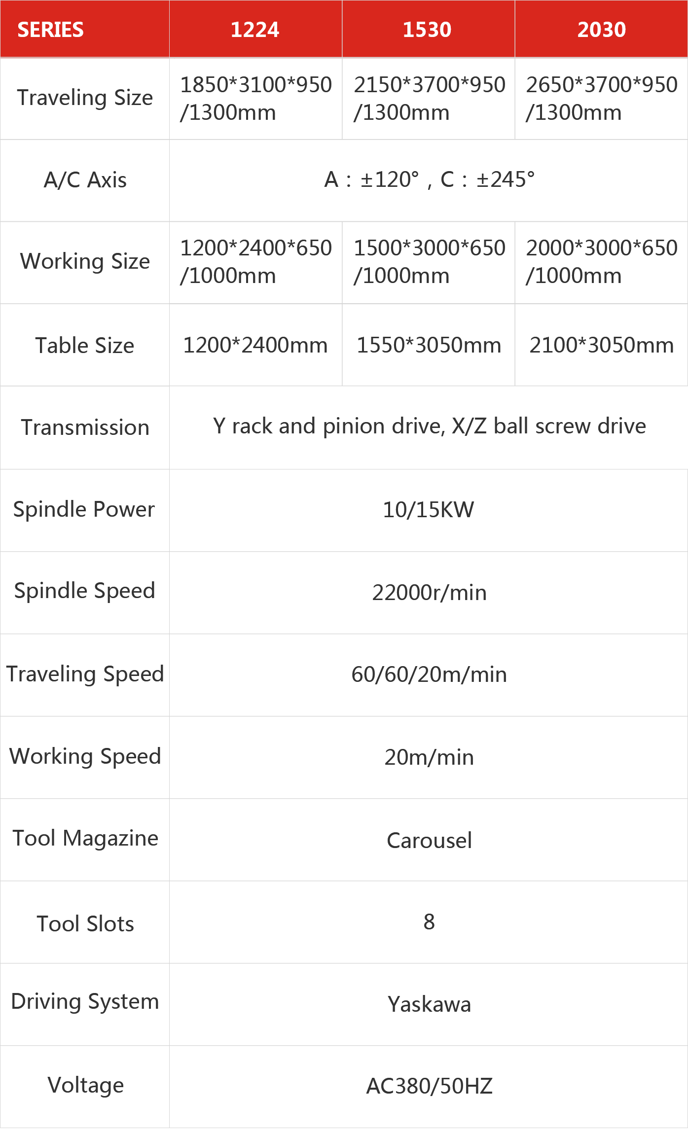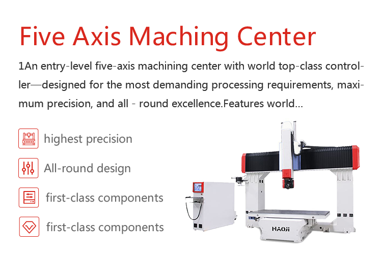 3 CNC machining cent er with 5 synchronizing interpolated axes; Real-Time Tool Center Point Rotation (RTCP), well suited for 3D curved surface processing